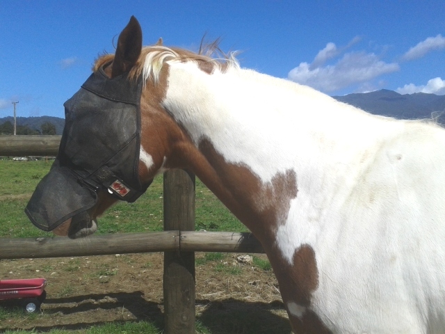 An example of a nose guard to help reduce symptoms of headshaking syndrome.